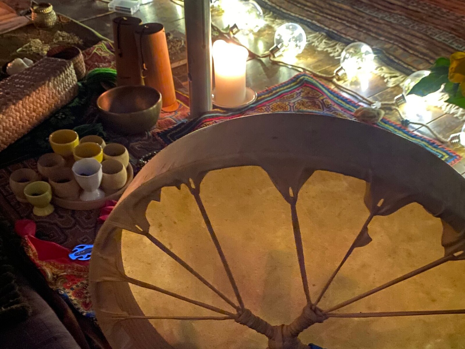 A 16ft yurt with a wood burner, the place where we meet and share our stories and experience the ceremony.